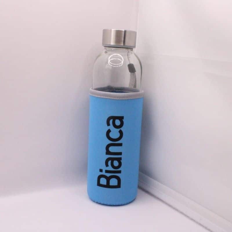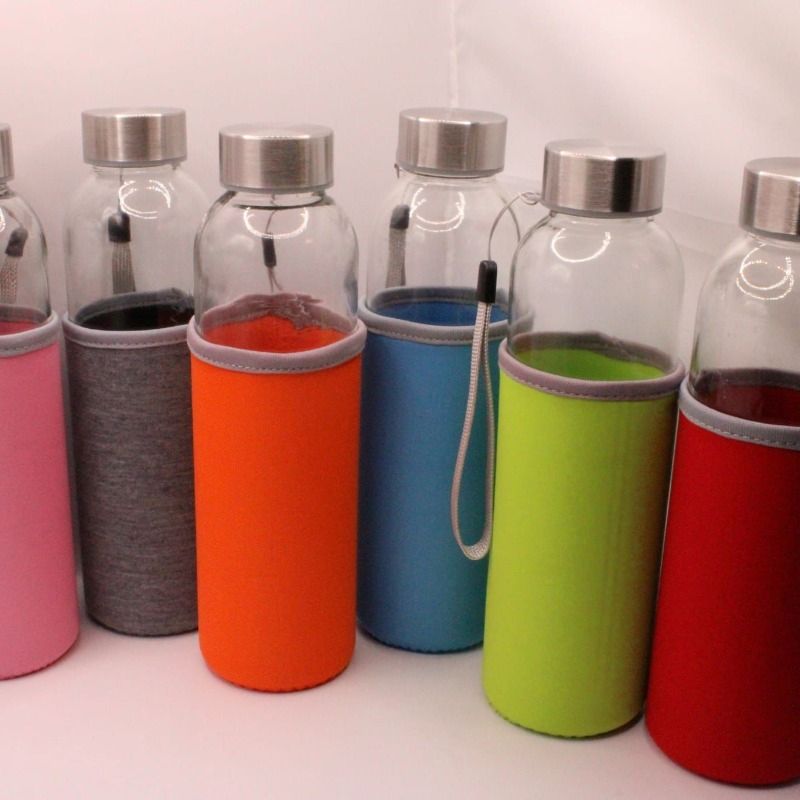 Glazen drinkfles met hoes