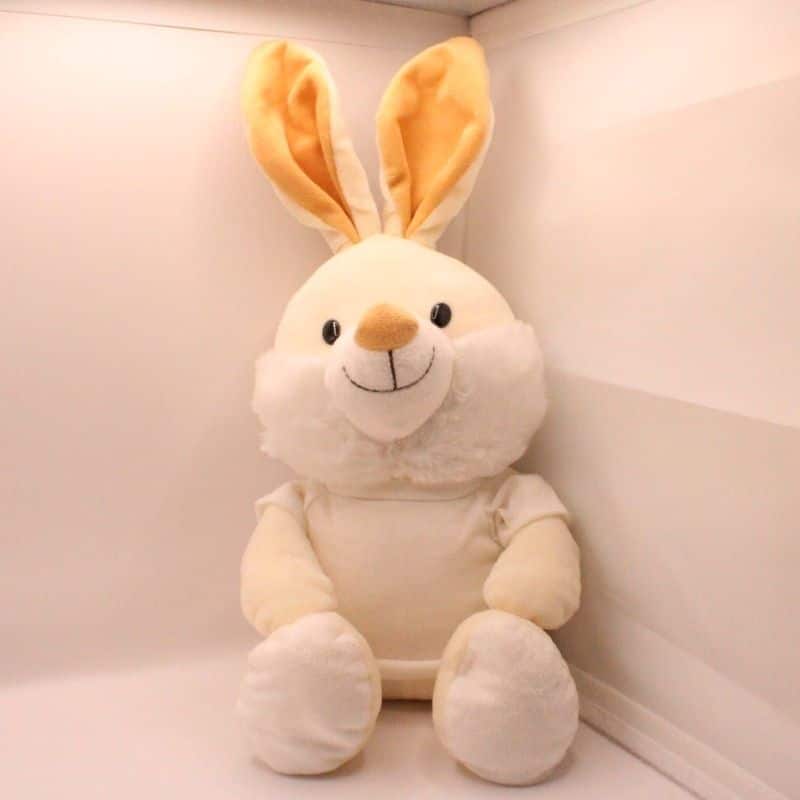 Iemand persoonlijk verrassen met een knuffel die echt speciaal is? Dit zachte pluchen konijn met wit T-shirtje dat jezelf kunt laten bedrukken, is een leuk liefdevol cadeau voor iedere leeftijd en gelegenheid.